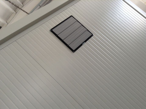 Il controsoffitto interno è costituito da pannelli sandwich con lamiera micro nervata con il lato a vista preverniciato e l’altro lato zincato. La coibentazione interna ha spessore 25mm, ed è composta da schiuma di resine poliuretaniche espanse autoestinguenti con K termico 0,771. l pannelli vengono incastrati in apposite sedi ricavate nella struttura della gronda di coronamento del monoblocco, ed a esso fissati mediante rivetti.